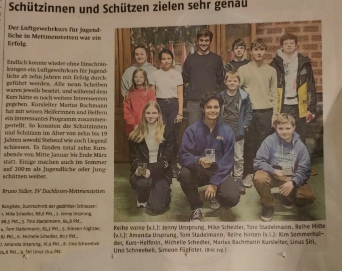 Der SVDM engagiert sich seit vielen Jahren für die Förderung junger Schützinnen und Schützen. Unser Ziel ist es, Kindern und Jugendlichen den Einstieg in den Schiesssport zu ermöglichen.